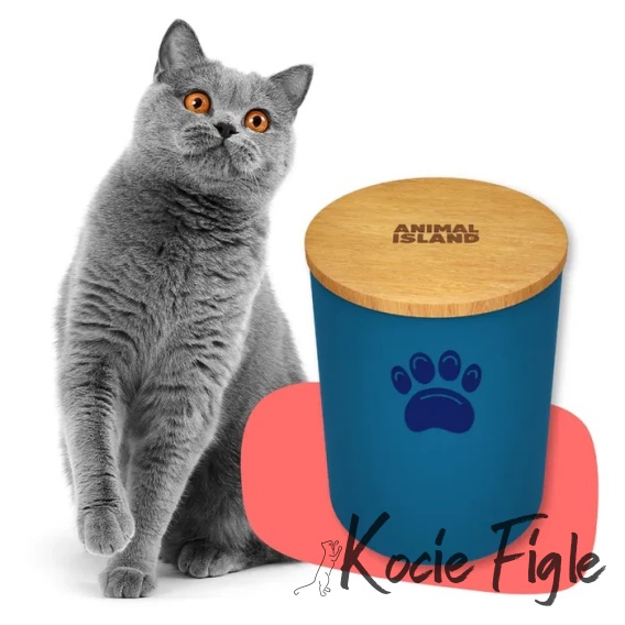 Szklany pojemnik na przysmaki z drewnianym wieczkiem Marka Animal Island patrzy na kocie potrzeby przez pryzmat miłości, dlatego stworzyła produkt zgodny z preferencjami nawet najwybredniejszych Kotów.