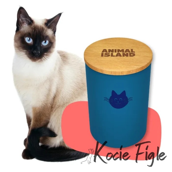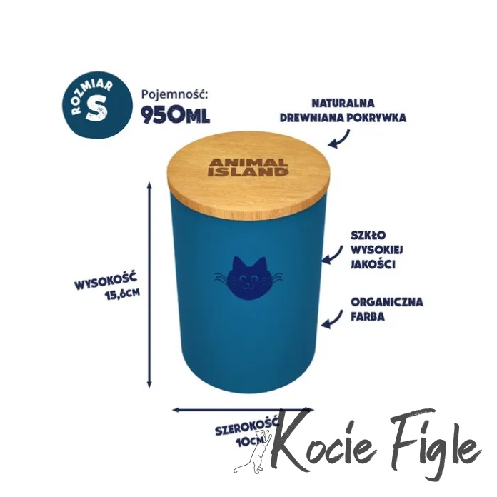 Szklany pojemnik na przysmaki z drewnianym wieczkiem Marka Animal Island patrzy na kocie potrzeby przez pryzmat miłości, dlatego stworzyła produkt zgodny z preferencjami nawet najwybredniejszych Kotów.