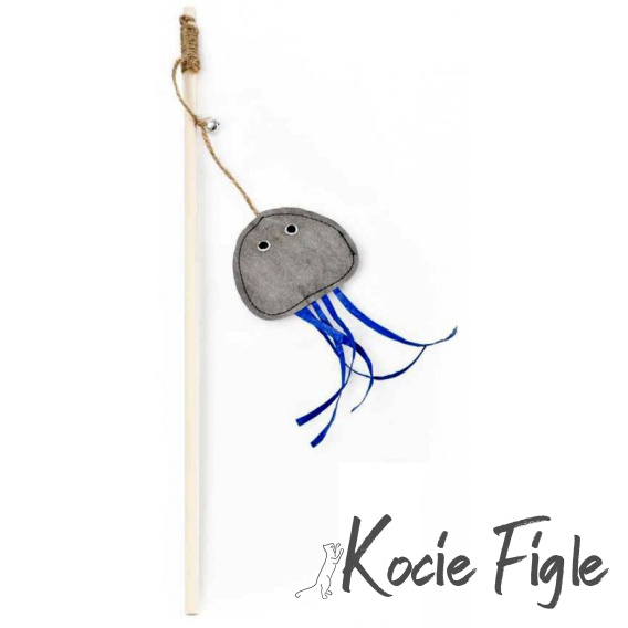 Wędka dla kota z meduzą pozwala na interaktywną zabawę, angażując kota w łapanie, skakanie i szarpanie.