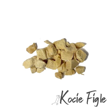 Przysmaki liofilizowane dla kotów o zawartości 100% kurczaka.