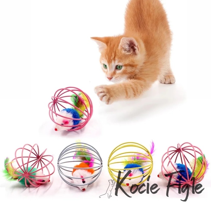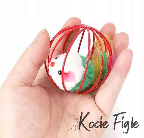 Lekka i wytrzymała zabawka w formie klatki z myszką w środku, ozdobioną kolorowymi piórkami. Idealna do turlania i gonienia – pobudza naturalne instynkty łowieckie kota i zapewnia mu długie godziny aktywnej zabawy.