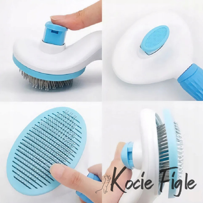• Szczotka posiada oryginalny system czyszczenia – wystarczy nacisnąć przycisk, a sierść zostanie usunięta z igieł.