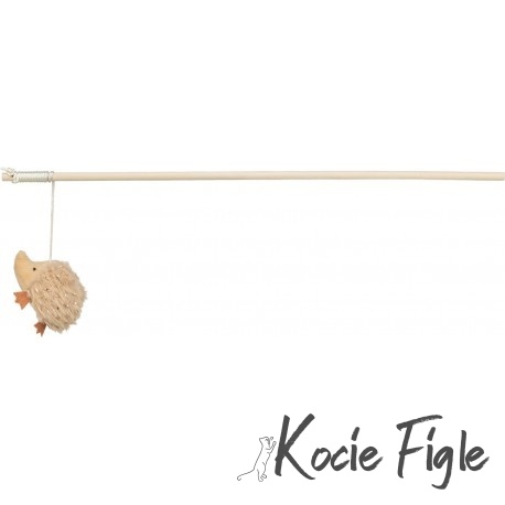 Wędka Jeż to lekka i prosta w użyciu zabawka dla kota, wykonana z miękkiego pluszu (poliester) oraz trwałego drewna.