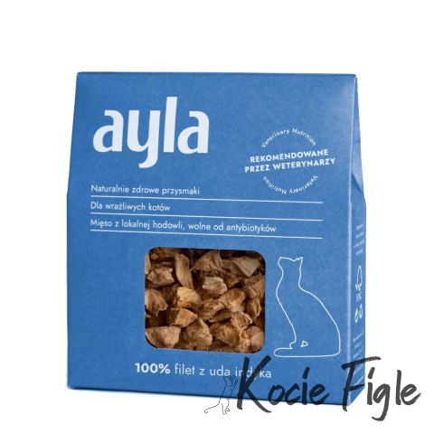 • Wyróżniają się nieporównywalną smakowitością - wywiady przeprowadzone z naszymi klientami potwierdziły, że 96% kotów, które próbowały AYLA zjadało je bardzo chętnie.